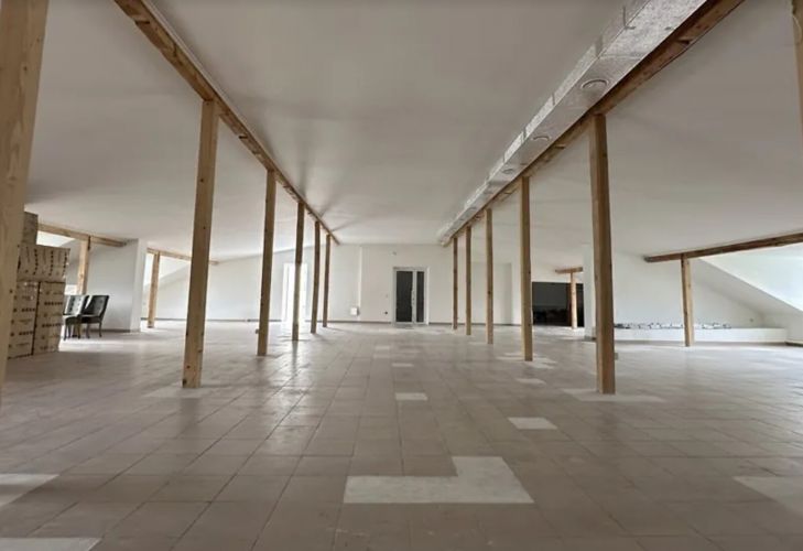 Приміщення розташоване на 3 поверсі та має власну терасу. Загальна площа 600 кв.м, корисна 450 кв.м.