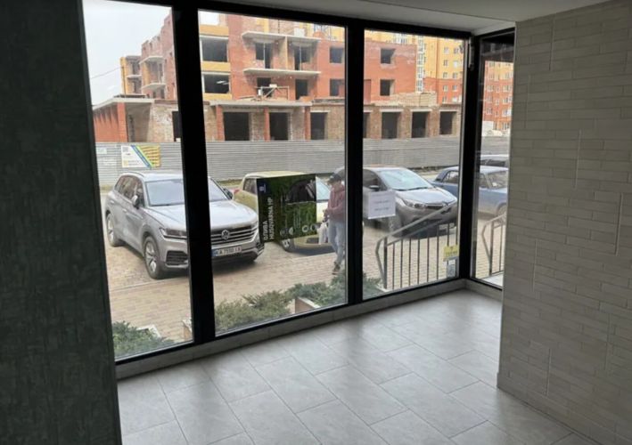 Здається в оренду комерційне приміщення площею 70 кв.м. Приміщення зі свіжим ремонтом, встановлені зовнішні посилені захисні електрожалюзі. Охоронна та пожежна сигналізація на пульті ВДСО. Відеоспостереження. Окрема, незалежна від будинку, каналізація. Великі панорамні вікна. Двері широкі, з двох частин, зі склопакетами SOLAR. Електроенергія 380 В, 12 КВт. Потужні склопакети, потрійне (6+4+6, мм) скло, зовнішнє скло на всіх конструкціях має покриття SOLAR та не пропускає тепла. Функцію опалення та кондиціонування виконують дуже економічні інверторні кондиціонери. Присутнє зовнішнє озеленення.