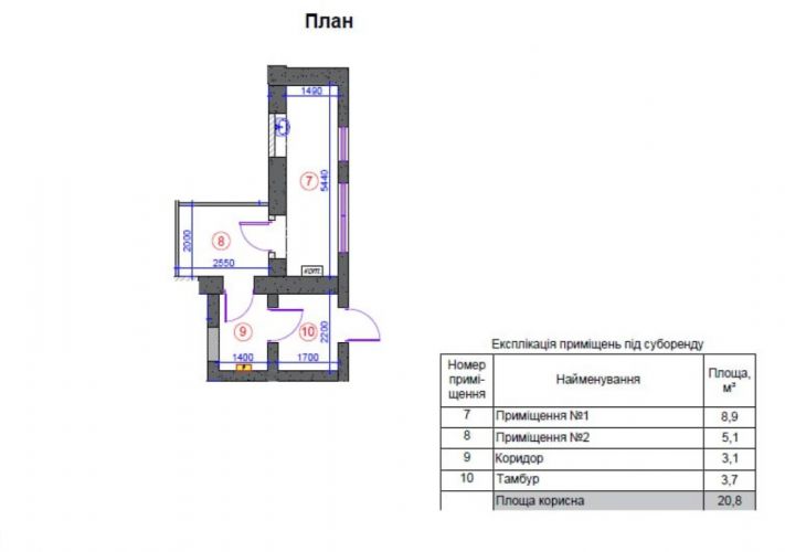 В приміщенні 2 кабінети, мокра точка, без с/в.