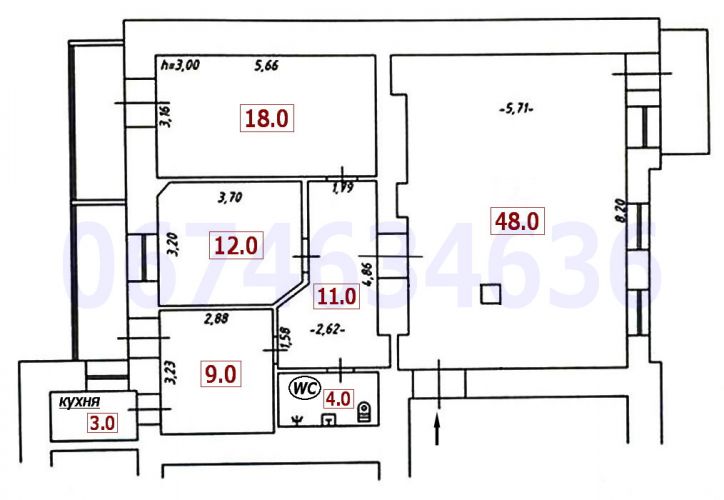- кабинет (открытое пространство) и 3 отдельных кабинета, кухня, санузел (душевая кабина), 3 балкона;
