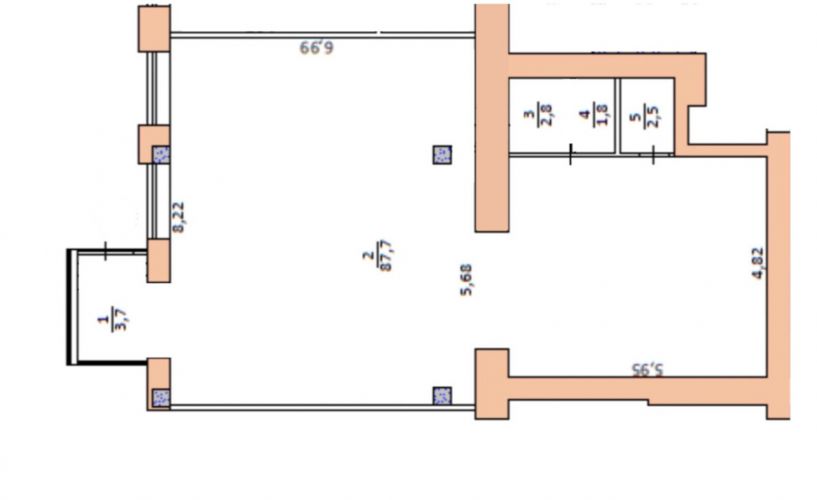 Приміщення фасадне, має великі вікна. Загальна площа 99 кв.м, приміщення зі зручним плануванням. Приміщення зі свіжим ремонтом.
