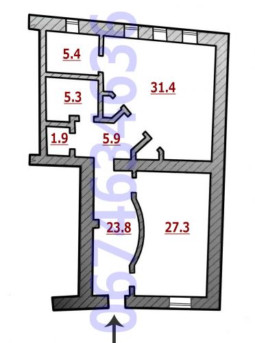 - холл-рецепция 24 м2, 3 кабинета (31 м2, 27 м2, 5 м2), мини-кухня, подсобные помещения, санузел;