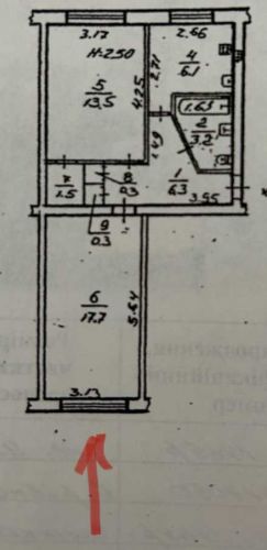 Общая площадь 50 м2 - 2 комнаты (1-я выход на фасад с навесом, 2-я во двор), кухня, коридор, санузел, шкаф и кладовка, 2 кондиционера. После ремонта.