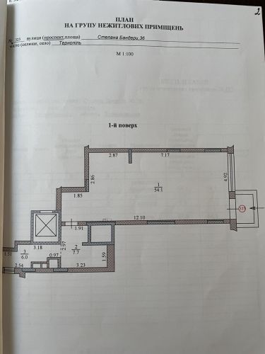 Приміщення розташоване на першому поверсі, має окремий вхід. Загальна площа 68 кв.м, великий основний зал, окремий санвузол та підсобні приміщення. Приміщення з індивідуальним газовим опаленням, обладнана система підігріву підлоги.