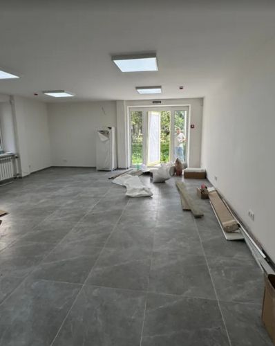 Приміщення площею 50 кв.м, розташоване на першому поверсі та має окремий вхід. Зроблено свіжий ремонт, підлога : керамограніт, стіни готові до фарбування, стеля : гіпсокартон. Також є санвузол і бойлер. Встановлена пожежна сигналізація та охоронна сигналізація Ajax.