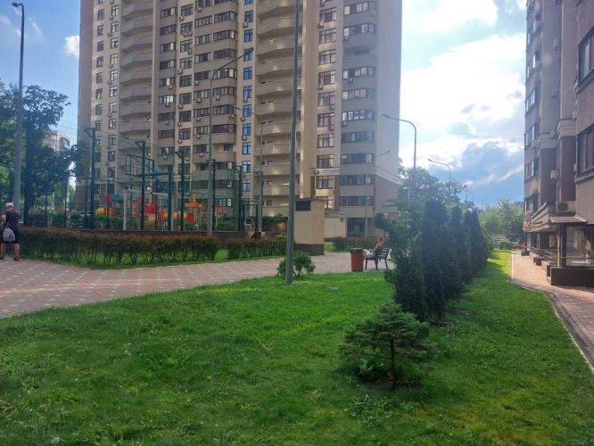 Приміщення громадського призначення на першому поверсі житлового будинку в ЖК Зелений Острів 2 з закритою територією з цілодобовою охороною, на території є багато магазинів, салони краси, дитячі та спортивні майданчики, кафе. Є підземний паркінг. Пору знаходиться посольство США. До метро Берестейська 10 хв пішки.