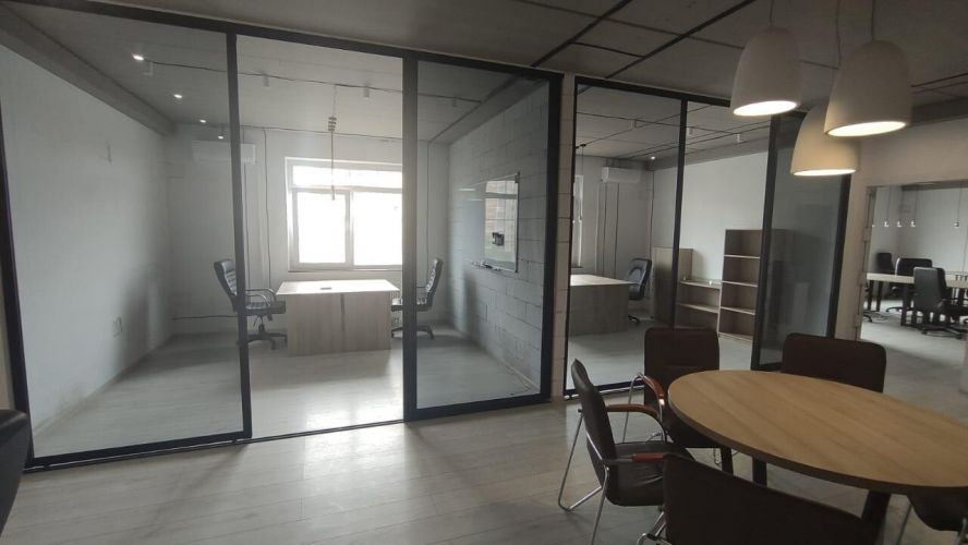 Сучасний, стильний дизайнерський ремонт, скляні перегородки, всі необхідні офісні меблі, побутова техніка (холодильник, мікрохвильова піч, кавоварка, чайник і т.д.), кондиціонери, достатня кількість розеток, інтернет розведення. Свої сигналізація та відеоспостереження. Запасний вихід. Продумане планування. Можна зручно розмістити до 30 осіб.