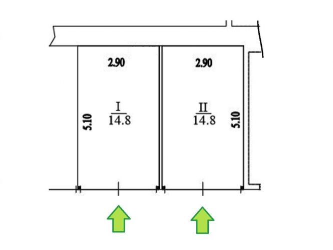 - Площа гаража 14,8 м.кв. (5,1 м. Х 2,9 м.);