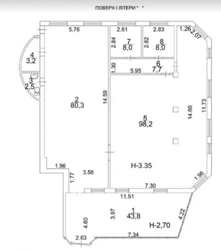 В приміщенні 2 торгових зала, кабінети, техприміщення, с/в.