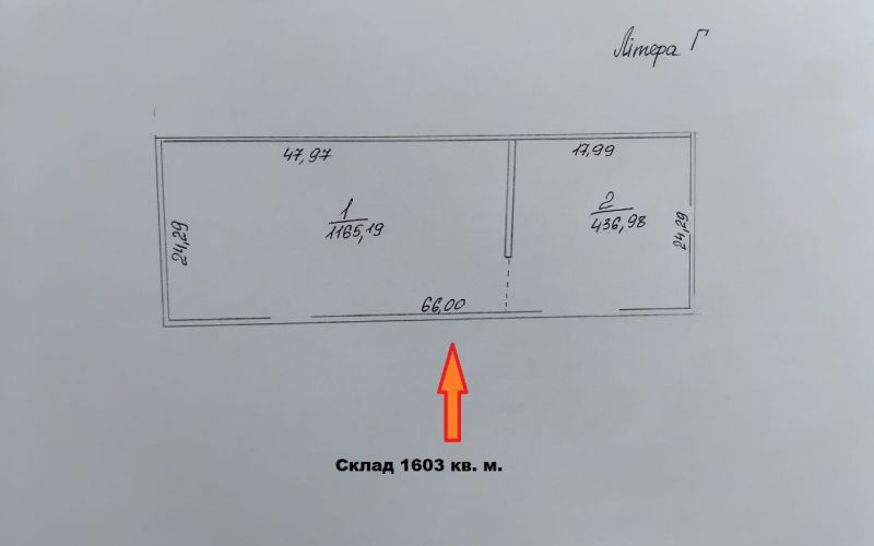 Площа 1603 м2, 1 поверх, можливий поділ від 350 кв. м.