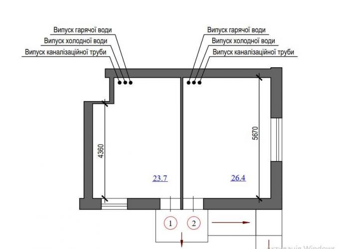 Угловое нежилое помещение в одном уровне на 1-ом этаже 5-ти этажного жилого дома. Внутри помещения состояние под ремонт.