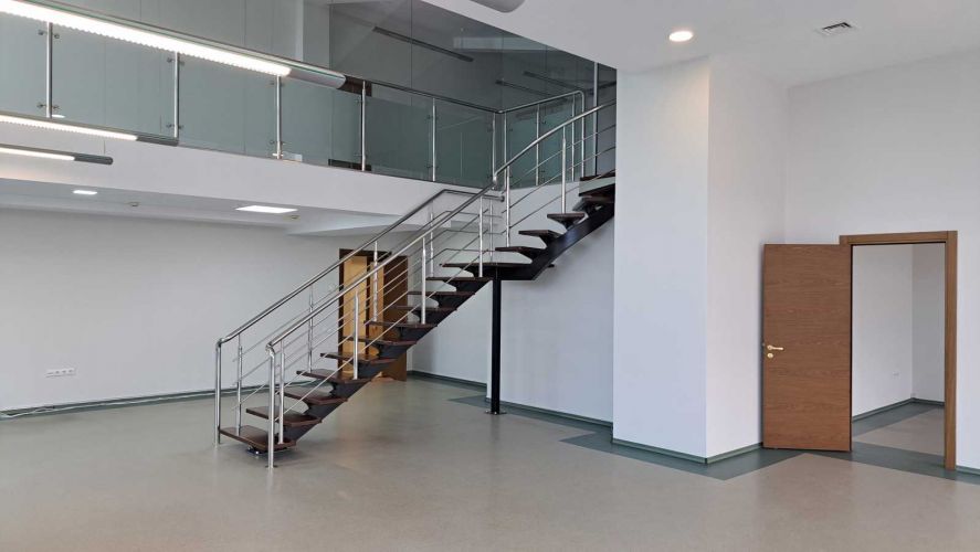 - Планування: Дворівневе офісне приміщення (частково атріум), сучасний інтер’єр з естетикою відкритих просторів, великими вікнами, що надихає на продуктивність. Оpen space, власний с/в із встановленим сучасним сантехнічним обладнанням, і міні кухня з меблями, комора. Ремонт, підлога лінолеум/ковролін, сучасні інженерні системи, оптоволоконні лінії звязку, швидкісний інтернет, пожежна сигналізація.