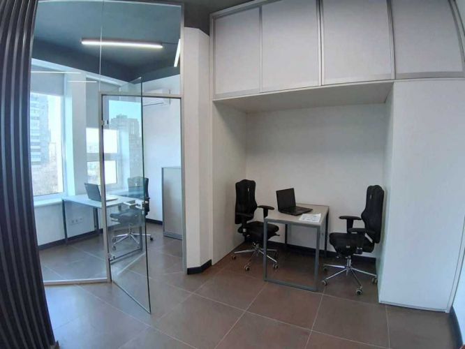 СУЧАСНИЙ ОФІС: 32м2 по вулиці Євгена Сверстюка 11Б. Дизайнерський ремонт- інтерєр у стилі LOFT. MAXI-SMART комфортне розміщення до 7 робочих місць. В офісі є зона ресепшн з металевою декоративною перегородкою для зручного зонування простору, велика та функціональна вбудована шафа - антресоль, тумба. За скляною перегородкою розташована кімната переговорів. Офіс з кондиціонерами ,підлога плитка, LED- лампи, ролети на вікнах. Світлий офіс з великим вікном з якого відкривається чудовий вид на всю Лівобережну площу.