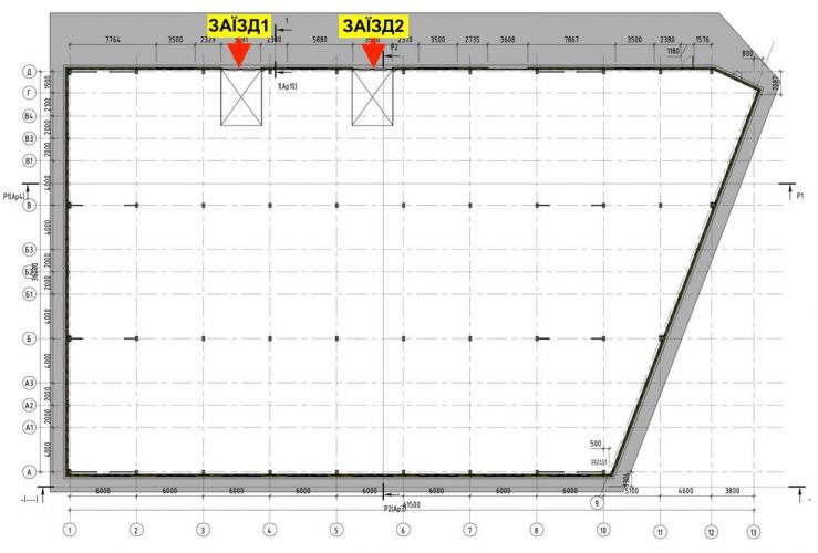 Є рампа для розвантаження, 2 великих воріт в рівень землі