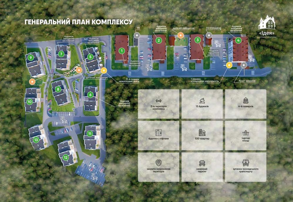 Жилой комплекс «Идея» расположен в Дарницком районе Киева по адресам ул. Идейная, 3, 7, 11, 13, в 30 метрах от ул. Чайковского, 1. Район отличается развитой инфраструктурой и хорошей транспортной доступностью.