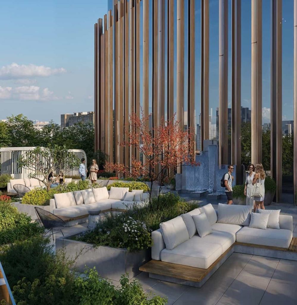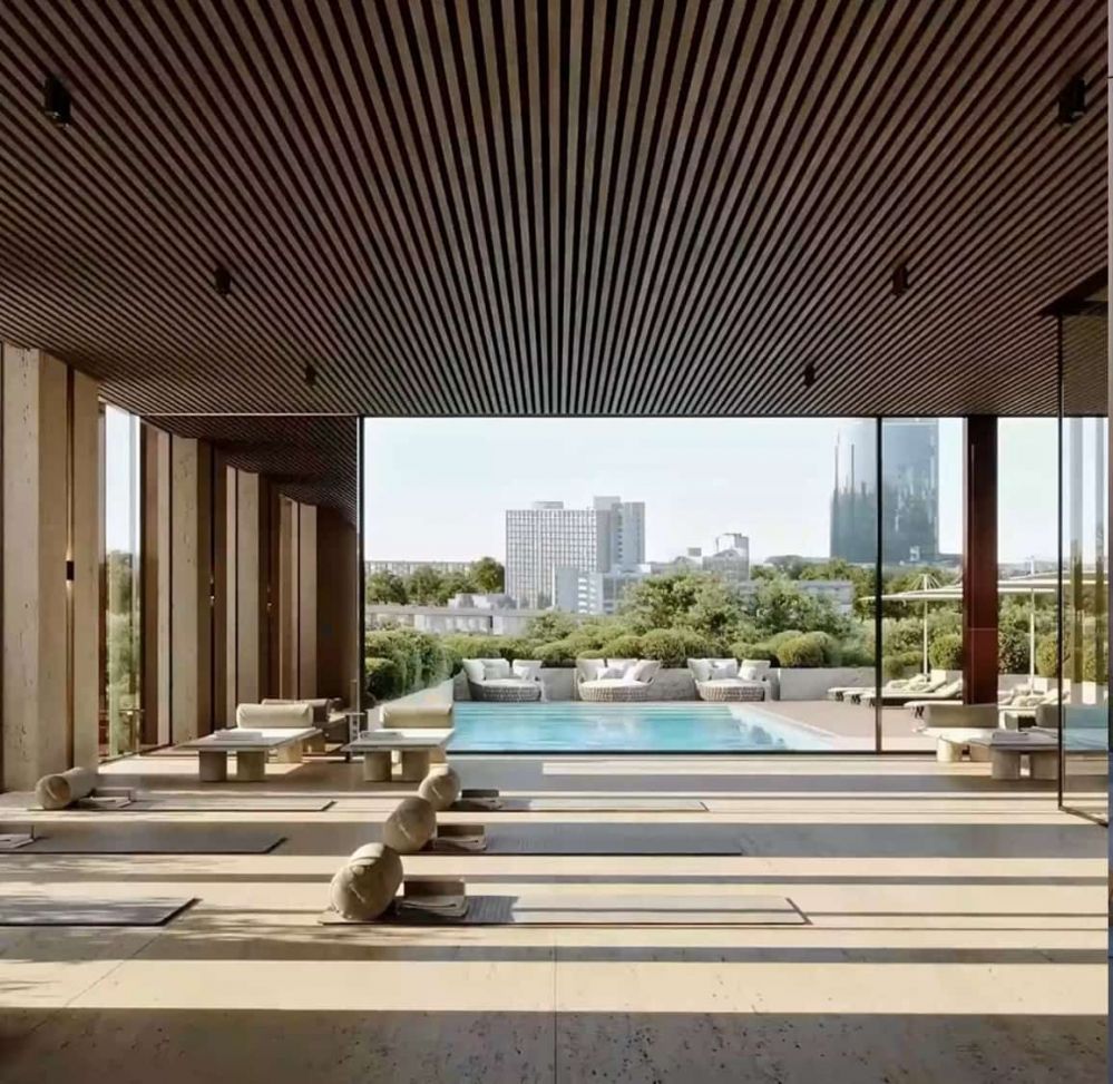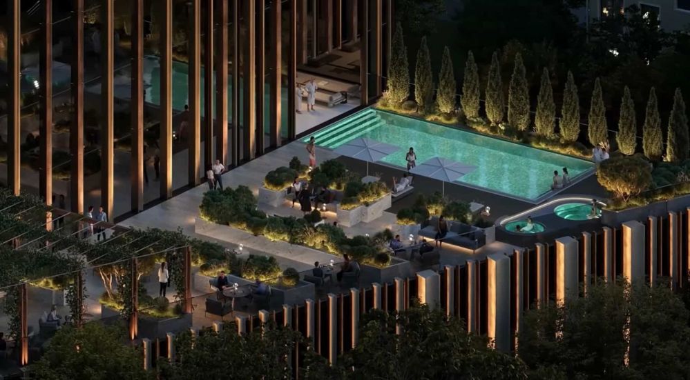 - 1 этаж: лобби, бассейн, 2 террасы по 1000 м2, ресторан, лаунж-зона