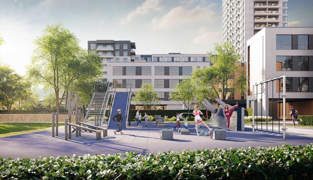 Комплекс расположен в Дарницком районе, на массиве Позняки, рядом с набережной Днепра. Такое расположение сочетает городскую инфраструктуру и зону для отдыха на свежем воздухе.