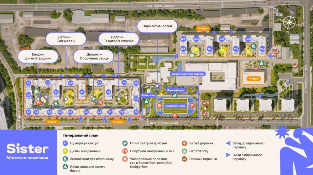 - Очередь №1 (дома № 1-4): строится, запланированная сдача в 1 квартале 2027 года