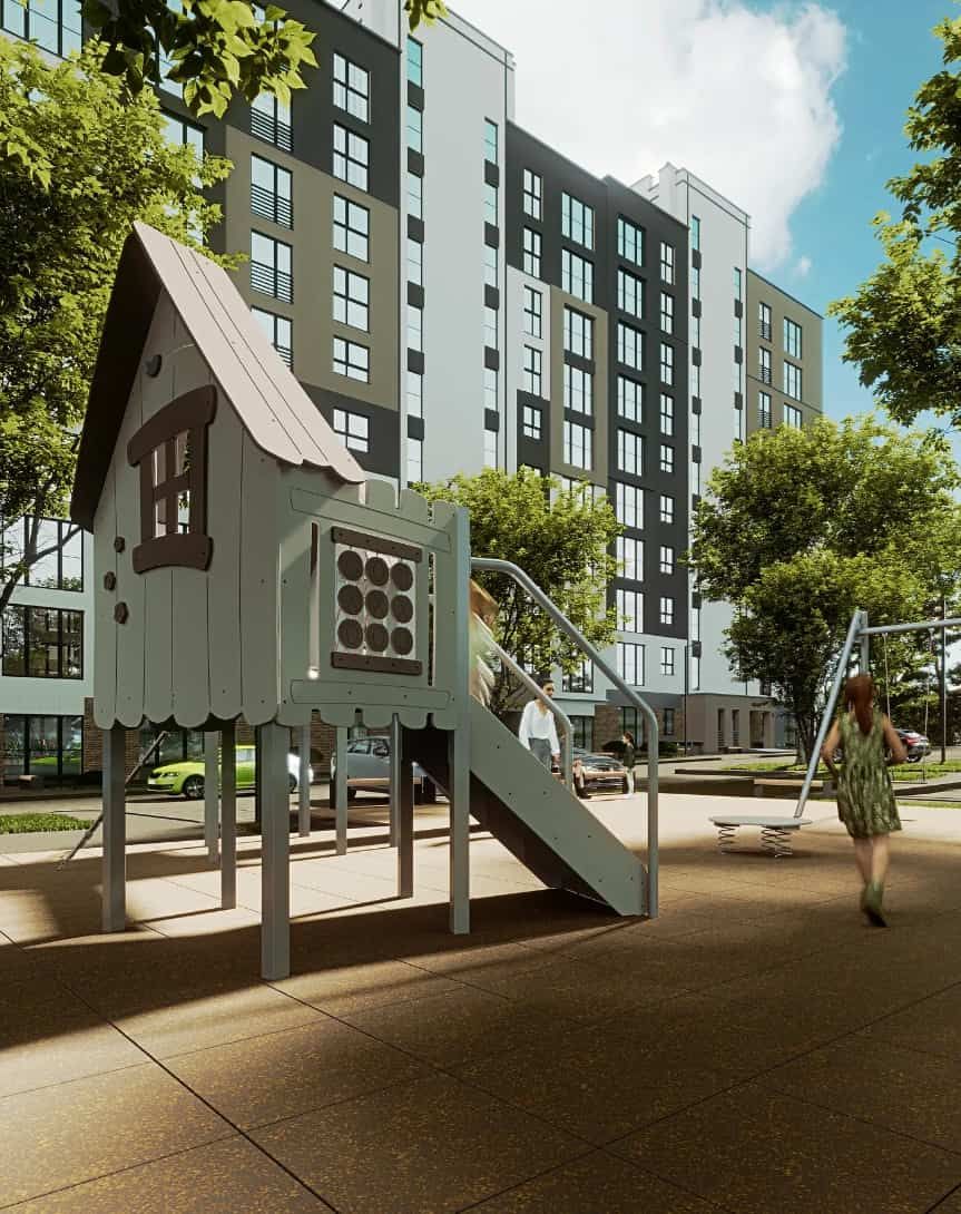 - Собственная территория ЖК: на территории комплекса, как правило, обустроены детские и спортивные площадки, зоны для отдыха.