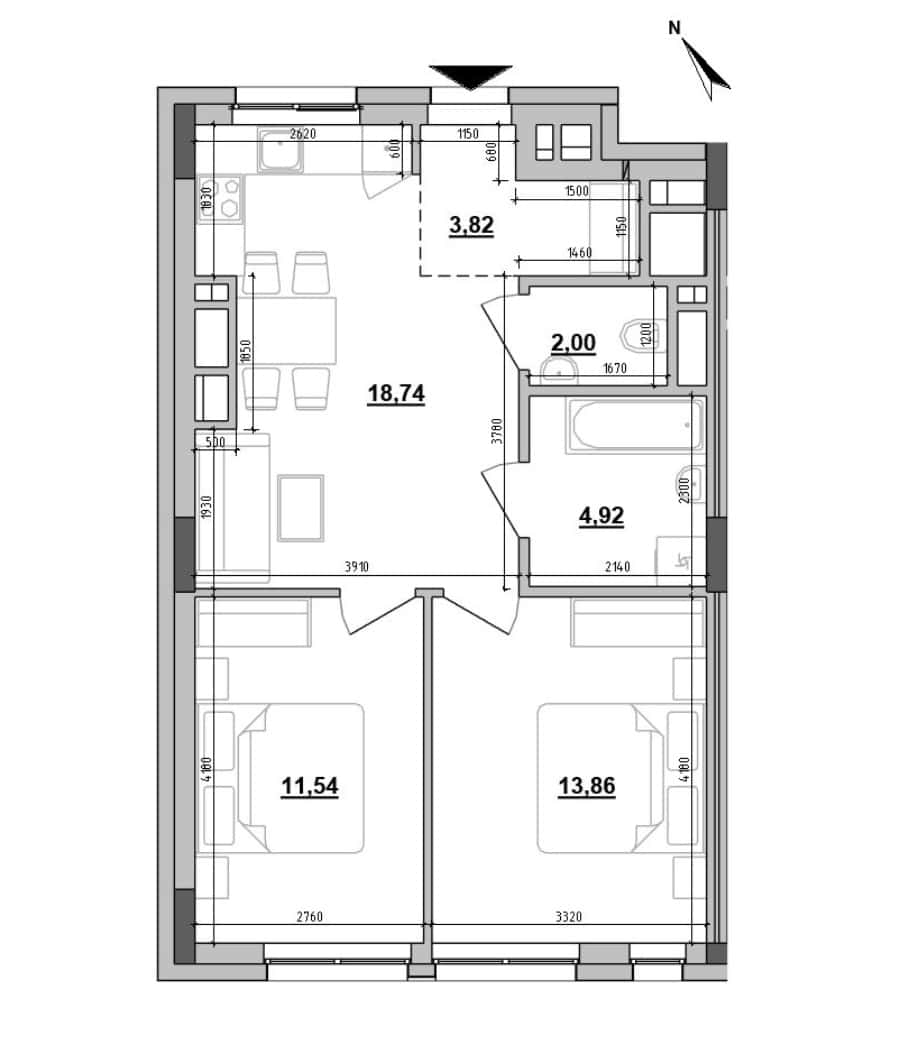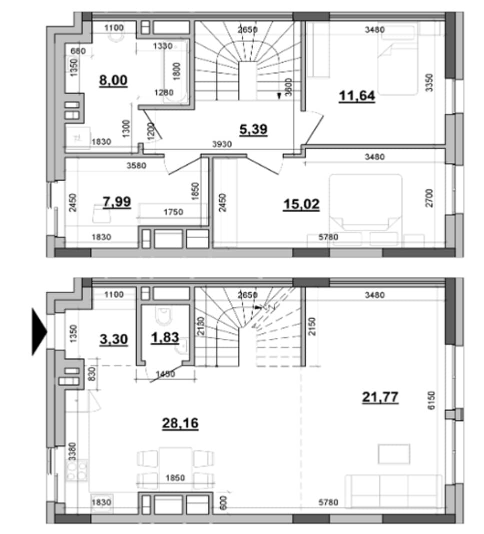 | 2-комнатные от 48 м2 | двухуровневые от 103 м2 |