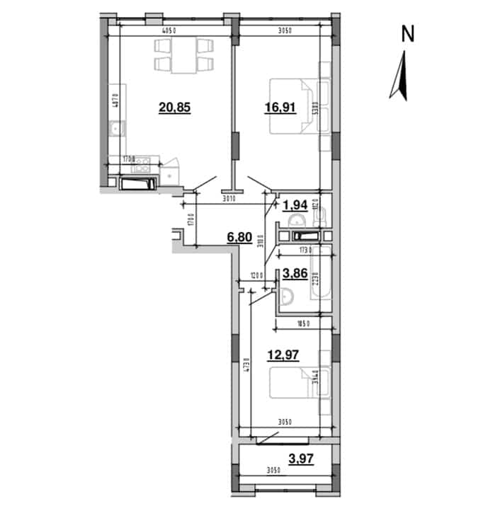 | 2-комнатные квартиры 65.23 м2 | 3-комнатные квартиры 84.35 м2 |