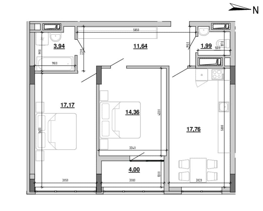 | 1-комнатные квартиры 43.44 м2 | 2-комнатные квартиры 61.28 м2 |