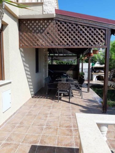 Уютный дом расположен на второй линии от моря. 4 спальни , 2 санузла. На территории есть бассейн, терраса, спортзал.
