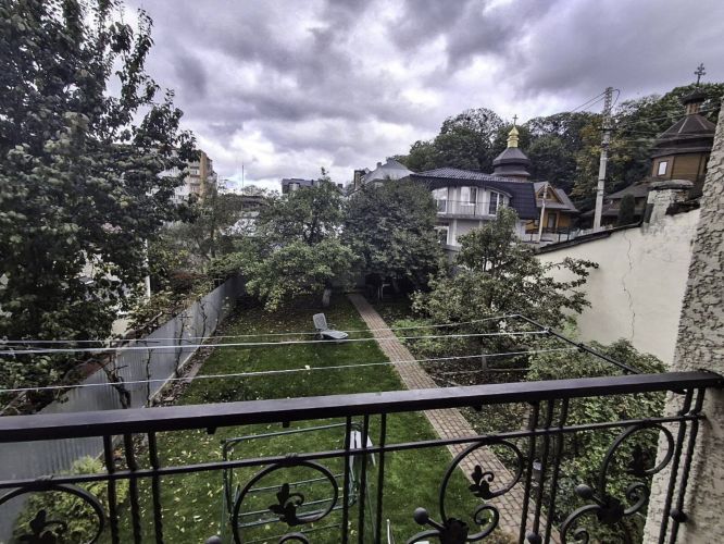 Ділянка 6 сотих, на подвірї бруківка, кована огорожа, ворота. На задньому подвірї зелений газон з відпочинковою зоною.