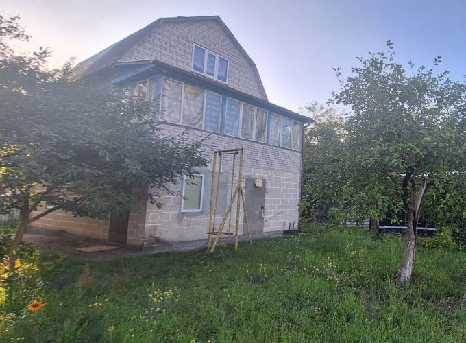 110/72/8 м2, кол-во этажей - 3, материал - кирпич, 1995 года постройки, участок 8 соток, сад, дачная застройка, свет, водопровод, отопление, канализация;