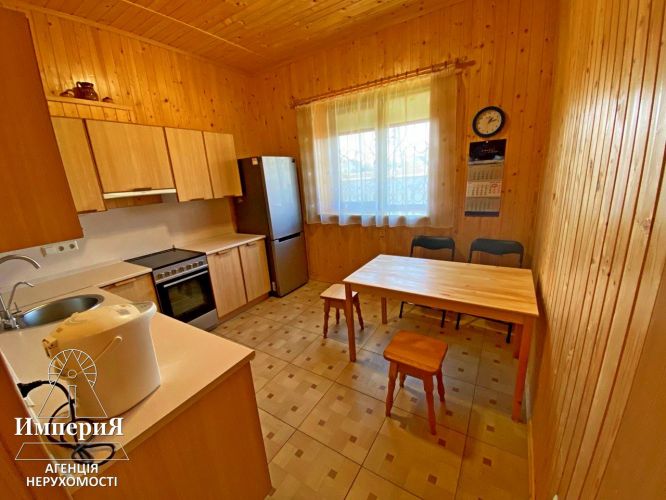Продам дом с прямим выходом к речке в селе Малая Сквирка, Белоцерковского района Киевской области. 20 км.до Белой Церкви, 90 км.до Киева. Постройка в 2014 года, ракушечник 600 мм. плюс облицовочный кирпич со слоем минеральной ваты Rockwool 150 мм. накрыт металлочерепицей. Первый этаж площадью 87 метров состоит из трех изолированных жилых комнат, просторной гостиной с твердотопливным камином и выходом на террасу, кухни, раздельного санузла и коридора. Мансардный этаж площадью 70 квадратов одним свободным пространством, утеплен слоем минеральной ваты Rockwool 250 мм. отделан натуральной вагонкой, сделаны ниши для хранения в подкровельном пространстве. Подключена электроэнергия три фазы 15 КВт. Установлен счетчик день\ночь. Заведена вода из колодца 15 м. с установленным фильтром грубой очистки и системой обратного осмоса с минерализацией. Водоотведение в септик с переливом. Электрическое автономное отопление, котел Proterm 11 КВт. с разводкой на теплые водяные полы и радиаторы и возможностью удаленного управления. Магистраль газа по границе участка. Большое внимание уделялось экологичности материалов и безопасности. Установлен бесперебойник (ИБП) на 800 Вт.+новая батарея на 75 ампер часов, что обеспечивает автономность до 12 часов, частично можно подтапливать дом камином. Оптоволоконный интернет. Круглосуточная охранная сигнализация. Система видеонаблюдения по периметру. Спутниковое телевидение. Ремонтные работы завершены в 2018 году. Металлопластиковые окна Rehau «Золотой дуб» покрытые бронепленкой. На полах испанская нескользящая плитка. Столярка и отделка стен из карпатской ели (смерека). Дорогие входные бронедвери с дополнительными секретами. Вмонтированная кухня с бытовой техникой. Остается мебель в комнатах и все техническое оснащение. Участок 30 соток с прямым выходом к реке. По фасаду капитальный забор из бутового камня с автоматическими откатными воротами, по бокам огорожен сеткой. На территории глубокий сухой погреб, летний душ и туалет, хоз.помещение для инвентаря. По периметру дома сделано водоотведение в дренажный колодец. Выполнена разводка воды по территории для полива. Участок ухожен, много молодых фруктовых деревьев, виноград, фундук и прочие. Важным преимуществом является то, что на противоположной стороне реки нет жилых домов. Цена: 87.000 у.е. Торг реальным покупателям. Агентство недвижимости "ИмпериЯ"
