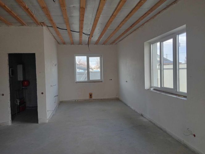 104/75/30 м2, кол-во этажей - 1, материал - газоблок, новый дом, дом сдан, участок 5 соток, участок пустой, в городской зеленой зоне;