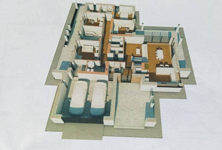 В будинку передбачено кухня- вітальня з виходом на терасу, 4 спальні, 3 с/в, 3 гардеробні, техприміщення.