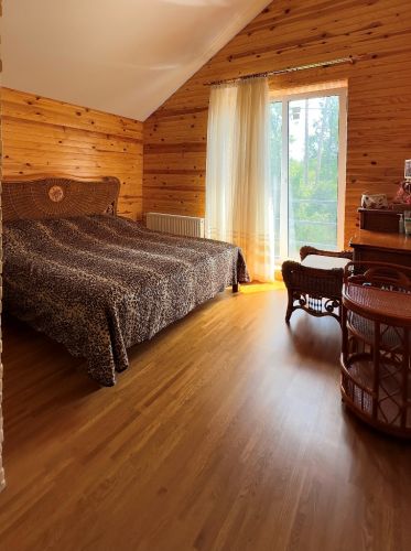 ? Обшивка деревом, тепла підлога по всій площі будинку, якісне оздоблення і місце під камін