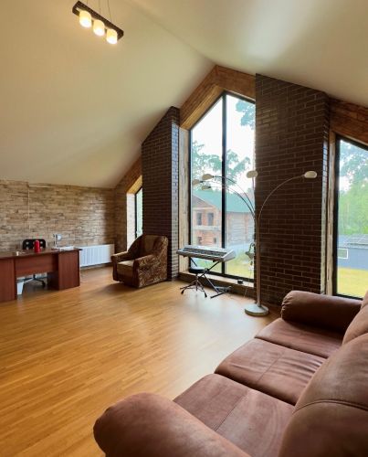 Будинок серед тиші, спокою та природи з панорамними вікнами підійде для творчих особистостей, ІТ-фахівців або для родини, що цінує свободу, простір, тишу й комфорт. По сусідству також нові будинки.