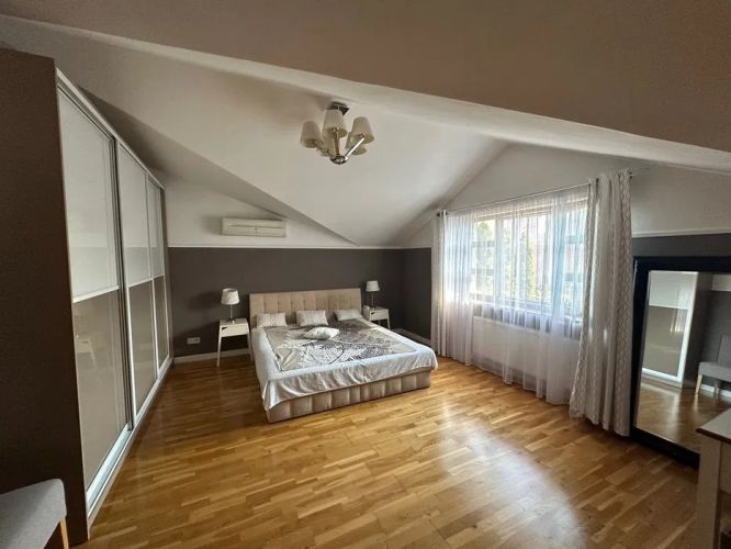 151 м2, кол-во этажей - 2, дом сдан, участок 4.4 соток, ландшафтный дизайн, рядом вода, парковка, бассейн, газ, свет, водопровод, отопление, сауна;