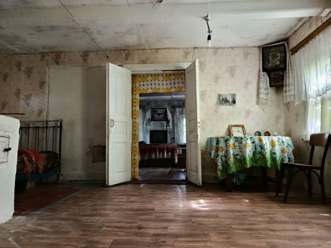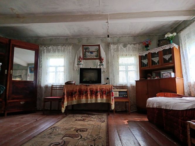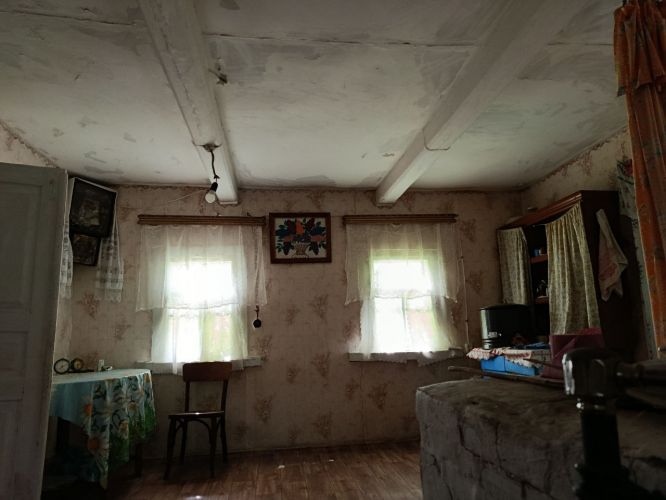 О доме: дом деревянный на фундаменте, крытый шифером, под крышей чердак с доступом из дома, без изысков, но пригоден для жилья. Понадобится только закупить дров и можно жить. В доме веранда (сени), кладовая и две жилые комнаты. В доме есть электроплита, холодильник, телевизор, в одной комнате русская печь в исправном состоянии с лежанкой, во второй комнате - груба.