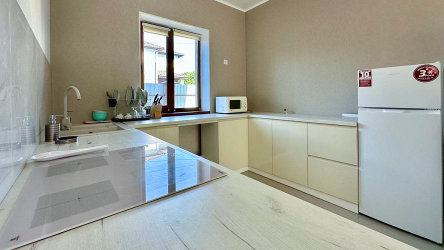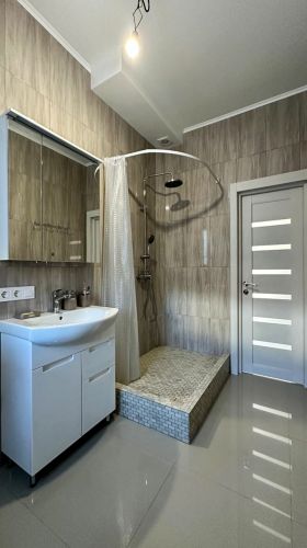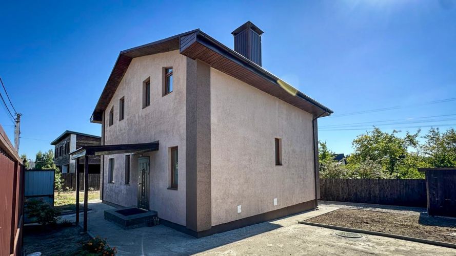 Якісне будівництво для себе, закінчений ремонт першого поверху, встановлена кухня і побутова техніка, в санвузлі - душова кабіна і вся необхідна сантехніка з меблями. Кутовий диван у вітальні, готова спальня і водяний підігрів підлоги по всій площі. На другому поверсі - чистова штукатурка, стіни повністю підготовлені під оздоблювальні роботи. Розведена електрика, встановлені інсталяції для сантехніки.
