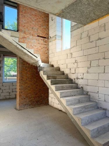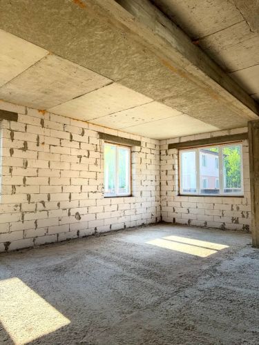 123/68.5/13.4 м2, кол-во этажей - 2, материал - газоблок, новый дом, участок 5 соток, участок пустой;