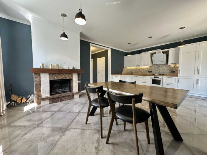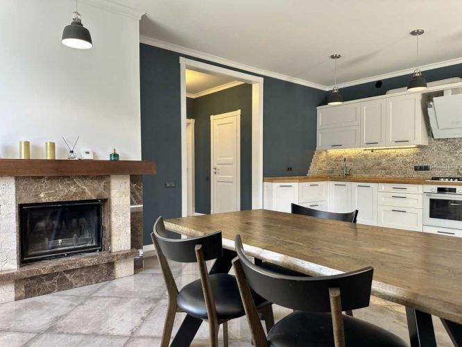 Кухня-вітальня 30,6 кв.м з дровяним каміном для теплих вечорів у колі найближчих