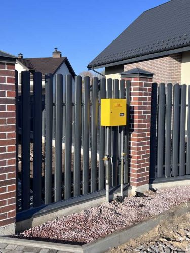 -Паркан по всьому периметру, хвіртка, відкатні ворота (електрика підведена)