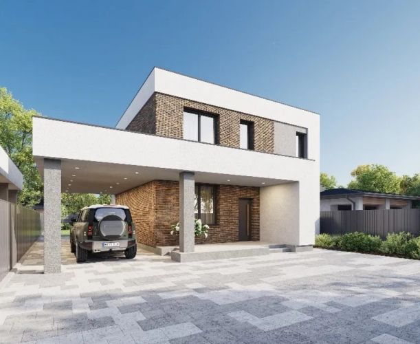 Передбачено розведення електрики, штукатурка, встановлення паркану та авто воріт, тротуарної плитки.