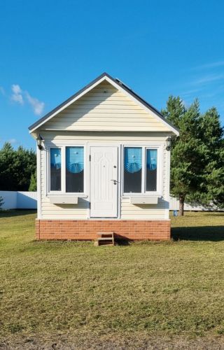 Продається новий компактний будинок (формат tiny house), розташований у тихому та зеленому місці на галявині серед дорослих сосен. Закрита територія кооперативу, доглянута ділянка, чисте хвойне повітря.