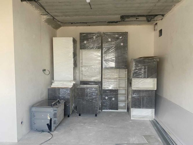 - 1 поверх : кухня-студіо (23м2) + с/в 5м2, коридор 10м2, розведена електрика, водяна тепла підлога, зроблена машинна штукатурка стін та стяжка підлоги. Вже куплено вуглову кухню та техніку.
