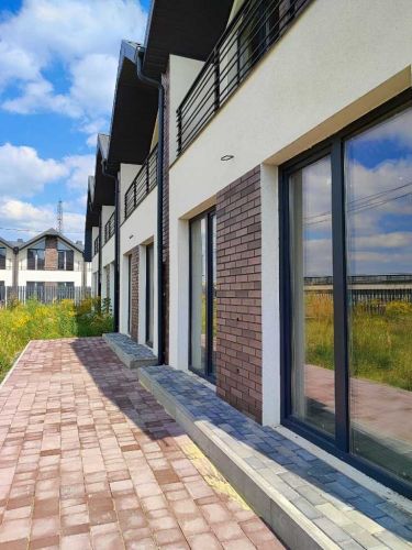 Таунхаус розташований в межах закритого котеджного комплексу із шести житлових блоків по чотири таунхауси кожен. Закрита огороджена прибудинкова з двома заїздами, фактично вся територія подвір’я вимощена бруківкою.
