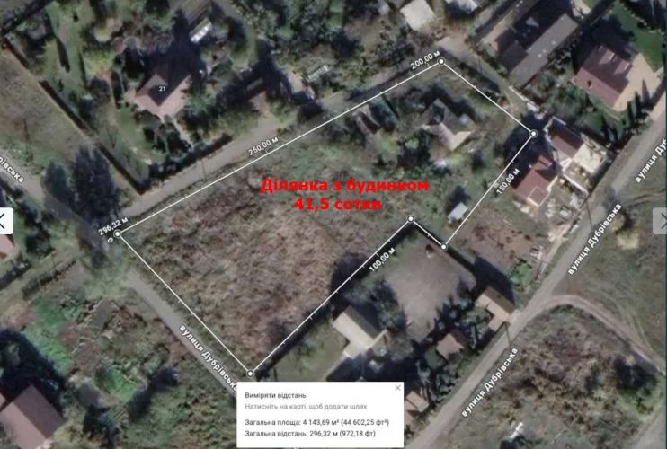 ДІЛЯНКА 41,5 сотки: 2 акти на право власності (33,5 сотки), 25 соток під житлову забудову, 8,5 соток – ОСГ, 8 соток в користуванні. Повністю вирівняна та розчищена від зайвих насаджень. Кутова, що дає можливість побудувати 2-3 окремих будинки на декілька сімей (з двох сторін асфальтований під’їзд) або декілька таунхаусів (дуплексів) для продажу. На ділянку заведений газ та електрика, є колодязь. Довкола котеджна забудова з постійним проживанням. Вулиця тиха, не проїзна.