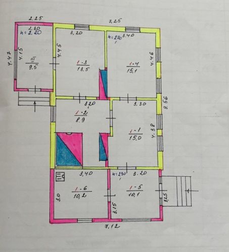 без отделки, высота потолков 3м, комнаты раздельные, на полу доска, туалет на улице