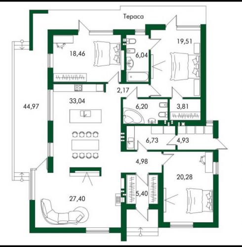 Кімнати: світлі та просторі, з продуманим плануванням, два майстер-бедрум та гостьова спальня.