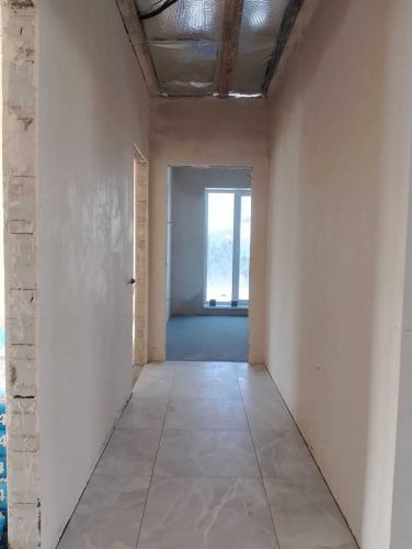 Завершується вкладання плитки на підлозі у загальних приміщеннях
