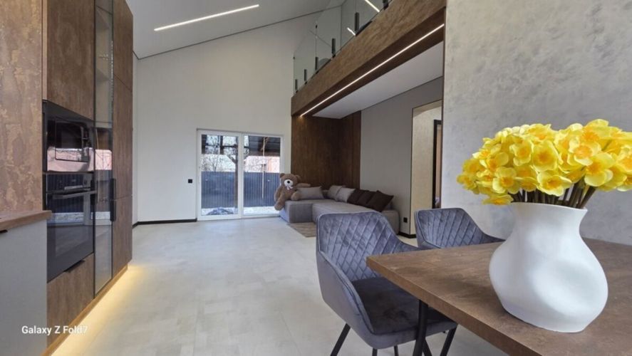 Будинок площею 100 кв.м, три окремі спальні, велика кухня-студія, гардеробна, два санвузли. Будинок з ремонтом, частково облаштований меблями та побутовою технікою.