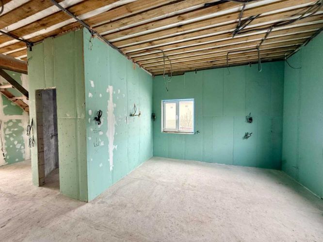 Стіни та підлога: Всередині все підготовлено до ремонту. Стіни зашиті гіпсокартоном, на підлозі - рівна стяжка